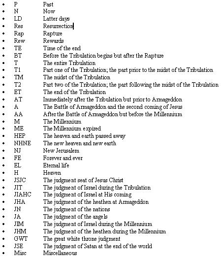 Occasionally, some reference verses will be added in the left column for additional study. See parts 6 and 7 (the indexes), for a complete list of all the verses that might pertain to a specific time period.